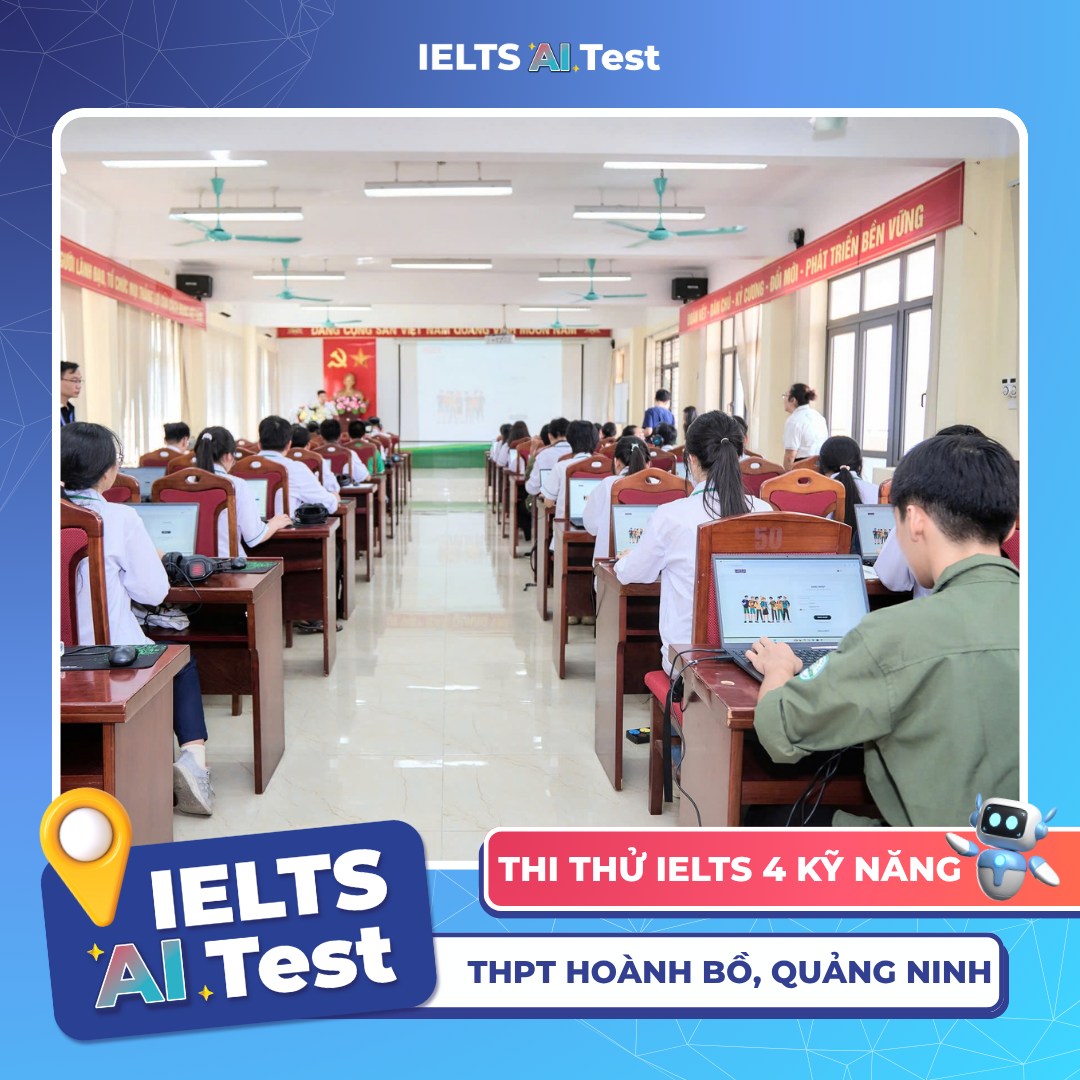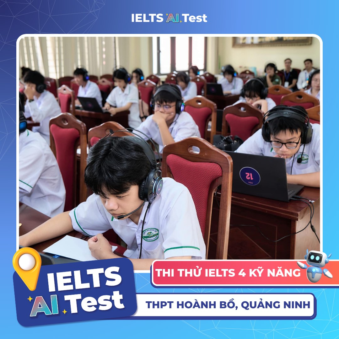Ngày 6/10/2025, tại Trường THPT Hoành Bồ (TP. Hạ Long, Quảng Ninh), hàng trăm học sinh đã tham gia buổi khảo thí năng lực IELTS với bài thi thử 4 kỹ năng trên nền tảng IELTS AI Test. Đây là hệ thống thi thử ứng dụng giám khảo AI, mô phỏng sát đề thi thật và phân tích bài làm theo tiêu chí của kỳ thi IELTS quốc tế.