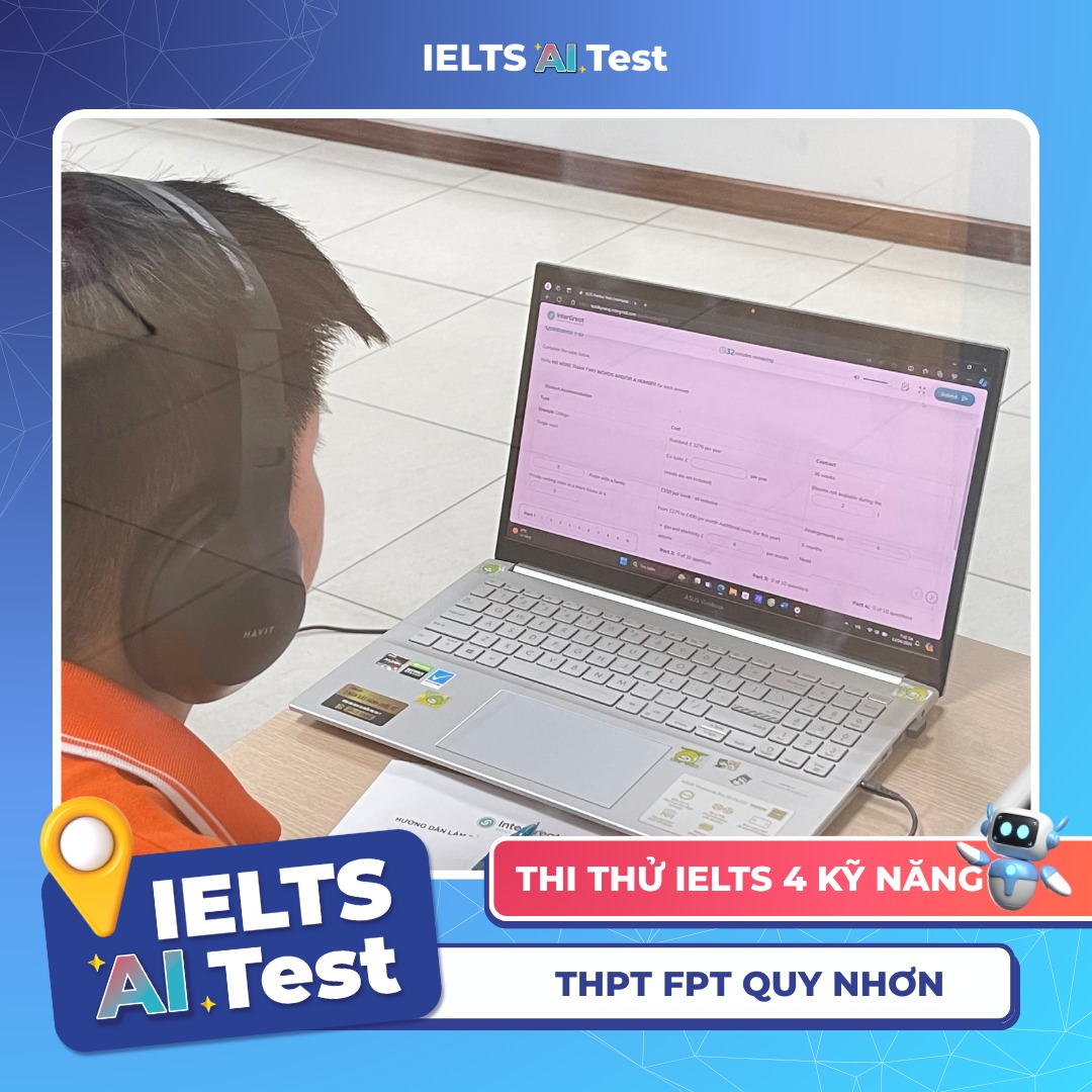 Trong bối cảnh IELTS ngày càng trở thành chuẩn năng lực quan trọng đối với học sinh THPT, nhiều trường học đã chủ động ứng dụng công nghệ để chuẩn hóa quá trình kiểm tra, đánh giá. Bắt kịp xu thế đó, mới đây, trường THPT FPT Quy Nhơn đã phối hợp cùng InterGreat Education Group (IEG) tổ chức kỳ thi thử IELTS 4 kỹ năng cho toàn bộ học sinh khối 10, 11 và 12. Sự kiện được triển khai hoàn toàn trên nền tảng IELTS AI Test, mang đến trải nghiệm thi thử sát thực, nhanh chóng và khách quan.