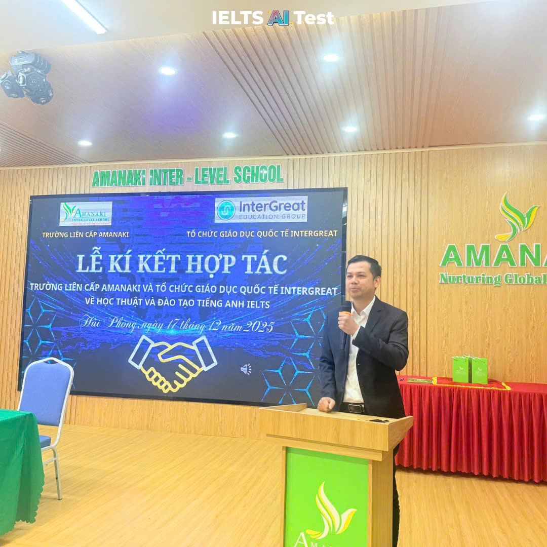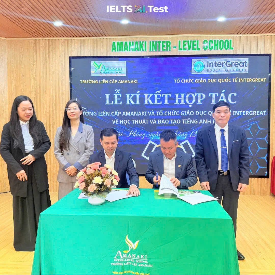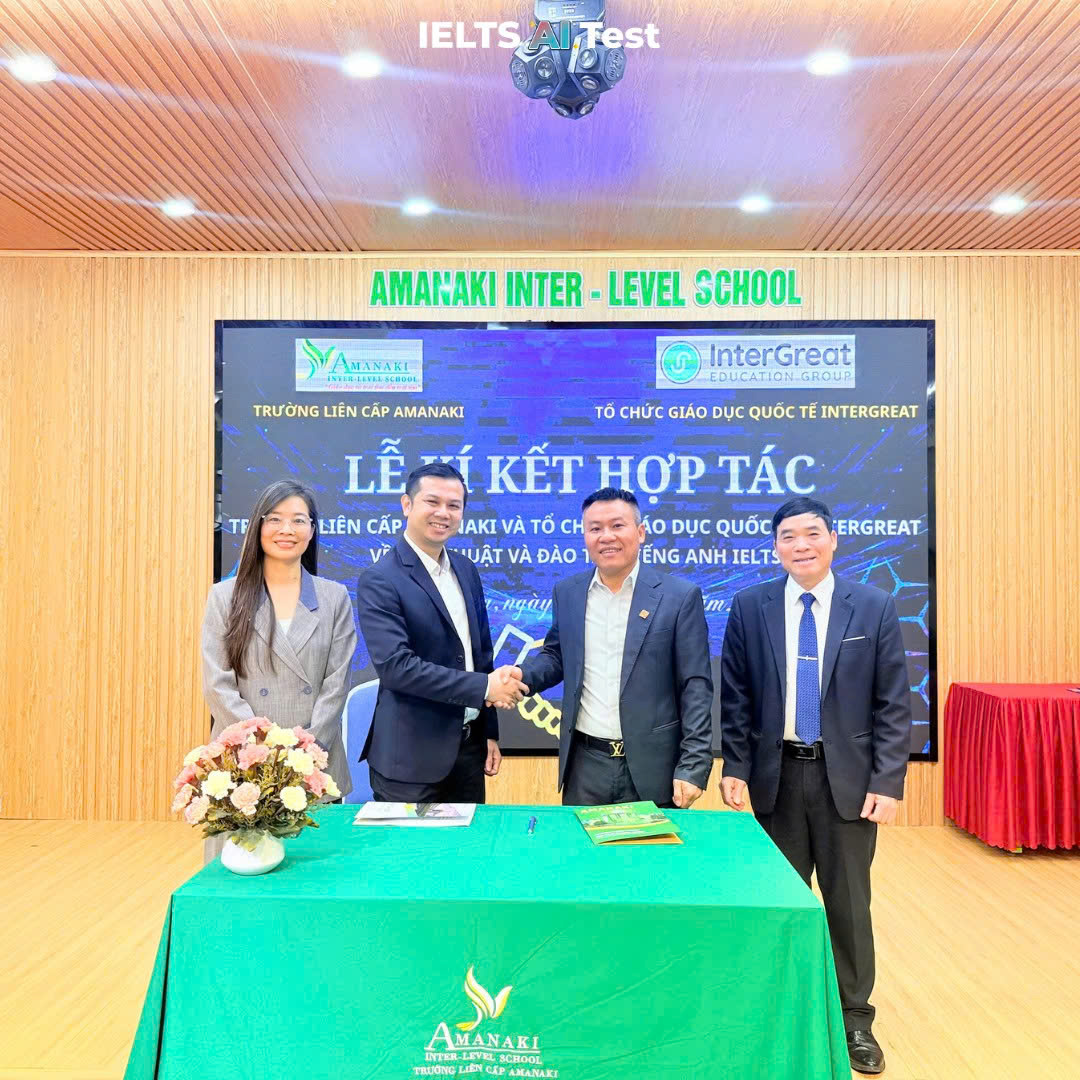 Vừa qua, InterGreat và Trường Liên cấp Amanaki đã chính thức ký kết thỏa thuận hợp tác trong lĩnh vực đào tạo và khảo thí IELTS, đánh dấu một cột mốc quan trọng trong hành trình nâng cao chất lượng giảng dạy và đánh giá năng lực tiếng Anh theo chuẩn quốc tế.
